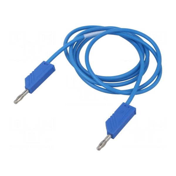 Konstrukcja przewodu wyposażona jest w wtyki bananowe z gniazdem osiowym 4 mm umieszczone po obu stronach. Elementy stykowe wykonano z mosiądzu, który został poddany procesowi niklowania w celu zwiększenia odporności. Produkt utrzymany jest w niebieskiej kolorystyce.