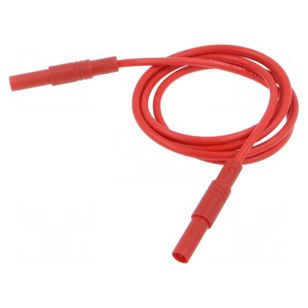 Przewód pomiarowy o długości 1 m wyposażony jest obustronnie we wtyki bananowe 4 mm. Złącza posiadają izolację oraz niklowane styki wykonane z mosiądzu. Przekrój przewodu wynosi 1 mm², a jego izolacja została wykonana z tworzywa PVC.