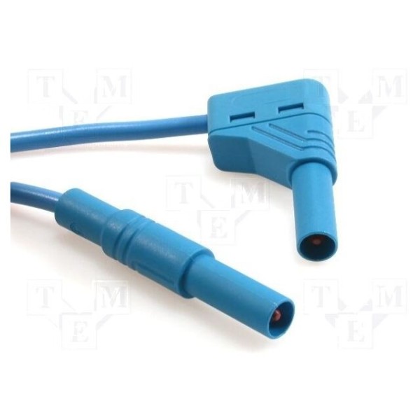 Przewód pomiarowy został wyposażony w izolowane wtyki bananowe 4 mm, z których jeden jest w wykonaniu kątowym. Konstrukcja bazuje na mosiężnych, niklowanych stykach oraz przewodzie o przekroju 1 mm² wykonanym w izolacji z PVC. Całość cechuje się niebieskim kolorem oraz długością 1 m.