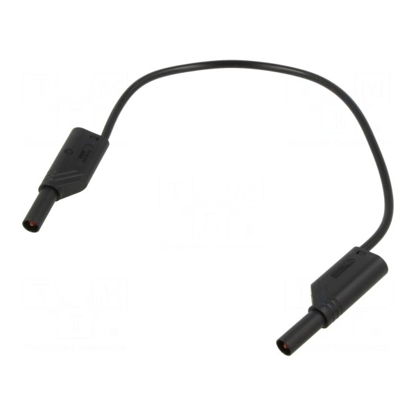 Przewód pomiarowy o długości 0,25 m został zaprojektowany do pracy z prądem znamionowym 32 A oraz napięciem do 1 kV. Wyposażony jest w izolowane wtyki bananowe z gniazdem osiowym 4 mm umieszczone po obu stronach przewodu, co umożliwia wygodne łączenie szeregowe akcesoriów pomiarowych.