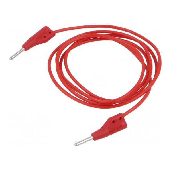 Przewód pomiarowy o długości 1m wyposażony jest we wtyki bananowe z gniazdem osiowym 2mm. Element charakteryzuje się przekrojem żyły wynoszącym 0,5mm² oraz izolacją wykonaną z materiału PVC w kolorze czerwonym.