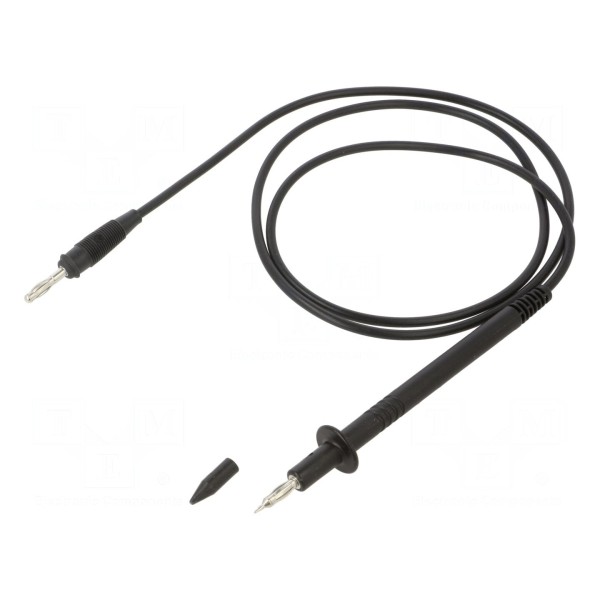 Przewód pomiarowy o długości 1 m wyposażony jest w końcówkę pomiarową oraz wtyk bananowy o średnicy 4 mm. Został przystosowany do pracy z napięciem znamionowym 30 V AC oraz 60 V DC, przy maksymalnym natężeniu prądu wynoszącym 16 A. Konstrukcja przewodu opiera się na izolacji wykonanej z tworzywa PVC oraz stykach z niklowanego mosiądzu.