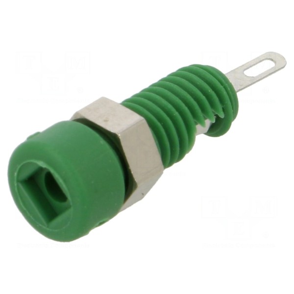 Gniazdo bananowe 2mm, 6A, montaż panelowy, zielone