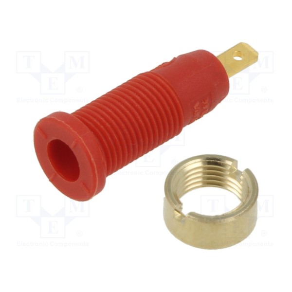 Gniazdo bananowe 2mm, 10A, 1kV, montaż przykręcany, kolor czerwony