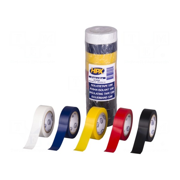 Taśma elektroizolacyjna HPX 5200 wykonana jest z nośnika w postaci folii PVC, wyposażonego w warstwę kleju kauczukowego. Produkt charakteryzuje się grubością 0,15 mm, szerokością 19 mm oraz długością 10 m w każdej rolce. Zestaw zawiera 10 sztuk taśm w różnych kolorach.