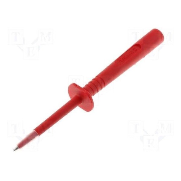 Końcówka pomiarowa o prądzie znamionowym 16A przeznaczona jest do współpracy z oprzyrządowaniem wyposażonym w gniazda o rozmiarze 4mm. Element został wykonany w kolorze czerwonym, co ułatwia identyfikację przewodów w układzie pomiarowym.