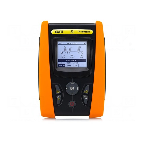 Miernik instalacji elektrycznej HT INSTRUMENTS HV0PVISO przeznaczony jest do diagnostyki systemów fotowoltaicznych. Urządzenie umożliwia pomiar napięcia stałego w zakresie od 3 V do 1500 V z dokładnością ±(1% + 2 cyfry) oraz pomiar rezystancji izolacji przy napięciach 250 V, 500 V, 1000 V i 1500 V z dokładnością ±(5% + 5 cyfr). Przyrząd wyposażony jest w funkcję GFL, która służy do lokalizacji usterek wewnątrz stringów oraz modułów PV.