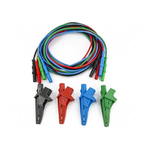 Zastosowane w zestawie elementy posiadają rozwarcie szczęk wynoszące 2,3mm. W zestawie: krokodylki 4 szt., przewody pomiarowe ( 4szt.).