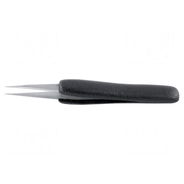 Pęseta prosta o długości 130 mm wyposażona w zwężone, ostre końcówki. Konstrukcja narzędzia w wersji ESD przystosowana jest do pracy w środowiskach wymagających ochrony przed wyładowaniami elektrostatycznymi.