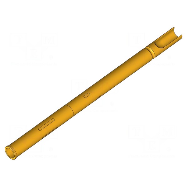 Gniazdo igły testowej przeznaczone do montażu poprzez lutowanie. Element jest przystosowany do współpracy z igłami testowymi.