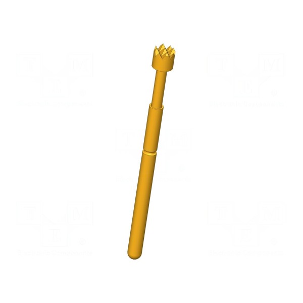 Igła testowa z końcówką ząbkowaną o średnicy 1,5mm przeznaczona jest do zadań pomiarowych w układach elektronicznych. Komponent charakteryzuje się prądem znamionowym na poziomie 3A oraz maksymalną rezystancją styku wynoszącą 20mΩ. Zastosowane materiały obejmują stop miedzi i berylu (CuBe) z pozłacaną powierzchnią styku, co zapewnia stabilność połączenia w warunkach pracy od -40°C do 80°C.