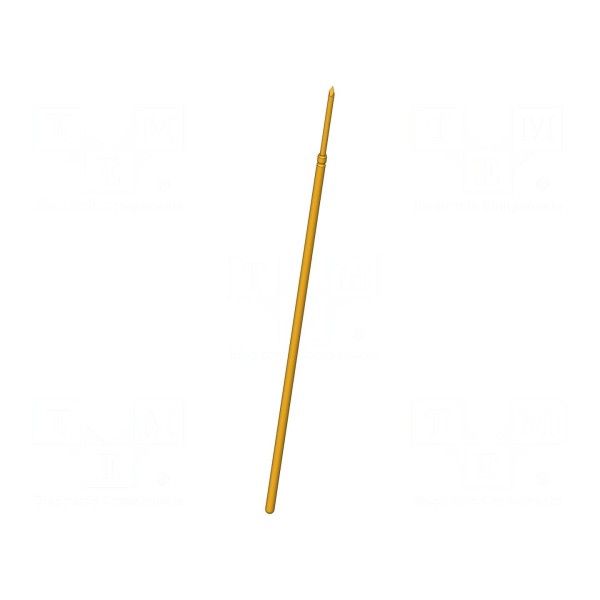 Igła testowa charakteryzuje się prądem znamionowym 2A oraz maksymalną rezystancją styku na poziomie 20mΩ. Element wyposażony jest w ostrą końcówkę o średnicy 0,5mm, wykonaną ze stali ze złoconą powłoką, co zapewnia odpowiednie właściwości stykowe.