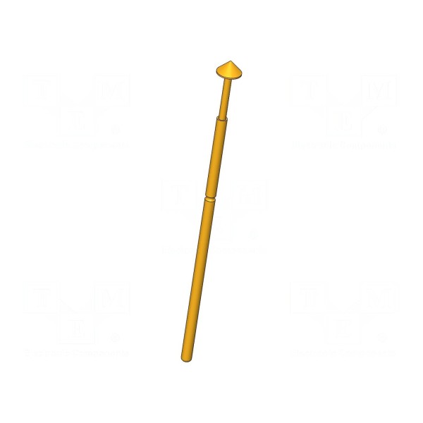 Igła testowa o średnicy końcówki 1,8 mm przeznaczona jest do precyzyjnych pomiarów elektrycznych. Element charakteryzuje się prądem znamionowym 2 A oraz maksymalną rezystancją styku na poziomie 20 mΩ. Końcówka o kształcie stożka zapewnia punktowy kontakt, a konstrukcja umożliwia pracę w zakresie temperatur od -40°C do 80°C.