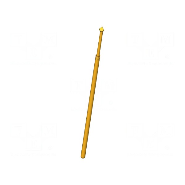 Igła testowa o długości 35,1 mm przeznaczona jest do precyzyjnych pomiarów układów elektronicznych. Element posiada końcówkę w kształcie dłuta o średnicy 1,2 mm, wykonaną ze stali i pokrytą warstwą złota, co zapewnia trwałość styku. Konstrukcja charakteryzuje się właściwościami magnetycznymi oraz samoczyszczącymi, a maksymalna rezystancja styku wynosi 20 mΩ.