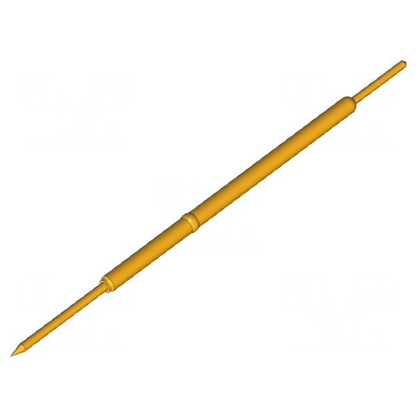 Igła testowa przeznaczona do zastosowań pomiarowych, wykonana z miedzi berylowej (CuBe) z powierzchnią styku pokrytą złotem. Element charakteryzuje się prądem znamionowym 3A oraz rezystancją styku wynoszącą maksymalnie 20mΩ. Zastosowana konstrukcja wykazuje właściwości samoczyszczące oraz magnetyczne.