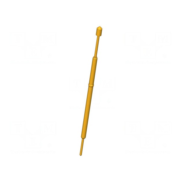 Igła testowa GKS-080 308 080 A 0805 przeznaczona jest do precyzyjnych pomiarów elektrycznych, oferując prąd znamionowy na poziomie 3A przy rezystancji styku nieprzekraczającej 20mΩ. Element charakteryzuje się ostrą końcówką w kształcie stożka o średnicy 0,8mm, co pozwala na stabilny kontakt z punktami pomiarowymi. Konstrukcja wykonana z miedzi berylowej (CuBe) posiada złocone pokrycie styku, co zapewnia właściwe parametry przewodności w układach elektronicznych.