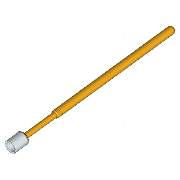 Igła testowa INGUN GKS-100 charakteryzuje się ząbkowanym kształtem końcówki o średnicy 2,25 mm. Element posiada pozłacane pokrycie styku, co zapewnia maksymalną rezystancję styku na poziomie 20 mΩ przy prądzie znamionowym wynoszącym 8 A.