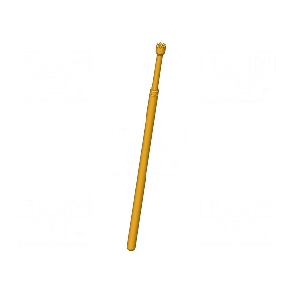 Igła testowa INGUN GKS-100 306 150 A 4000 E charakteryzuje się prądem znamionowym wynoszącym 8A oraz maksymalną rezystancją styku na poziomie 20mΩ. Konstrukcja elementu o długości 38,4mm wykonana jest z miedzi berylowej (CuBe) z pozłacaną powierzchnią, co zapewnia odpowiednie parametry przewodzenia. Końcówka typu ząbkowanego posiada średnicę 1,5mm.