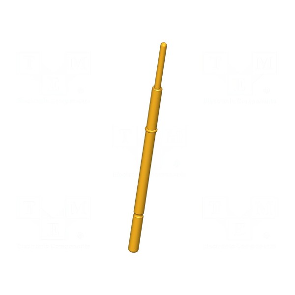 Konstrukcja wykonana została z miedzi berylowej (CuBe) z powierzchnią styku pokrytą warstwą złota, co zapewnia stabilność połączeń. Element posiada właściwości magnetyczne i przeznaczony jest do montażu wciskanego w systemach testowych. Całkowita długość igły wynosi 38,7mm.