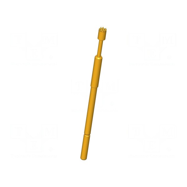 Całkowita długość igły wynosi 39,3 mm. Montaż elementu odbywa się poprzez wciskanie, co pozwala na stabilne osadzenie w gnieździe pomiarowym w układach testowych.