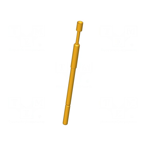 Długość całkowita igły wynosi 39,3mm przy sile ugięcia sprężyny na poziomie 2,25N. Zakres roboczego ugięcia sprężyn wynosi 4mm, natomiast ugięcie maksymalne osiąga wartość 5,3mm. Komponent przeznaczony jest do montażu wciskanego w urządzeniach testujących.