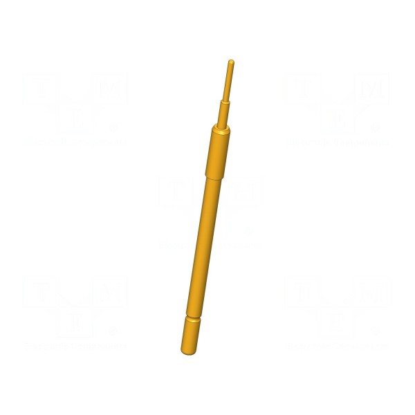 Igła testowa przeznaczona jest do układów pomiarowych o natężeniu prądu do 5A. Element posiada okrągły kształt końcówki o średnicy 0,64mm, a jego montaż odbywa się metodą wciskową. Konstrukcja wykonana została z miedzi berylowej (CuBe) i poddana procesowi złocenia powierzchni styku.