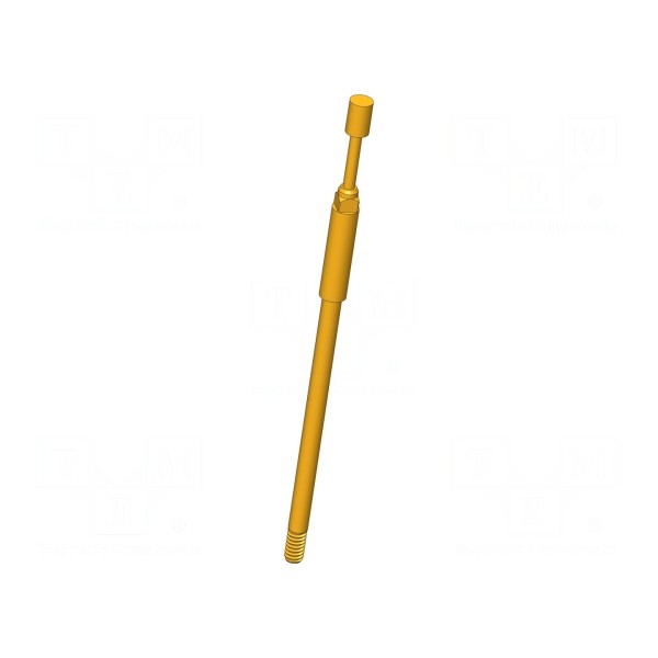 Igła testowa przeznaczona jest do precyzyjnych pomiarów elektrycznych, oferując prąd znamionowy na poziomie 8A oraz maksymalną rezystancję styku wynoszącą 100mΩ. Element charakteryzuje się kształtem końcówki typu płaski walec o średnicy 2mm. Konstrukcja wykonana została z miedzi berylowej (CuBe) z powierzchnią pozłacaną, co zapewnia odpowiednie przewodnictwo i trwałość połączenia.