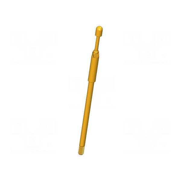 Igła testowa INGUN GKS-112 305 200 A 0810 MC to element przeznaczony do układów pomiarowych, charakteryzujący się prądem znamionowym 5A oraz maksymalną rezystancją styku wynoszącą 100mΩ. Komponent wyposażony jest w okrągłą końcówkę o średnicy 2mm, wykonaną z miedzi berylowej (CuBe) z pozłacaną powierzchnią styku. Konstrukcja posiada właściwości magnetyczne oraz umożliwia montaż poprzez wkręcanie.