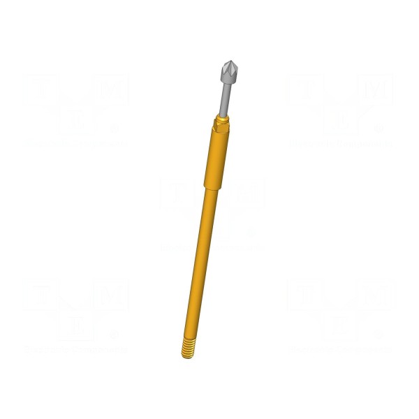 Igła testowa o długości 44,3 mm wyposażona jest w końcówkę w kształcie piramidy sześciokątnej o średnicy 2 mm. Element przeznaczony jest do montażu wkręcanego i charakteryzuje się prądem znamionowym wynoszącym 5 A. Wykonanie ze stali z rodowaną powłoką zapewnia rezystancję styku na poziomie maksymalnie 20 mΩ.