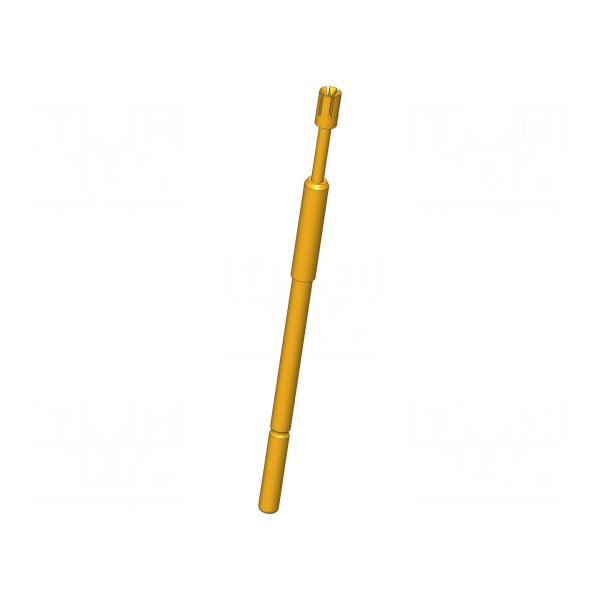 Igła testowa przeznaczona do zastosowań pomiarowych, charakteryzująca się prądem znamionowym 8A oraz maksymalną rezystancją styku wynoszącą 20mΩ. Element wykonany jest z miedzi berylowej (CuBe) z powierzchnią pozłacaną, co zapewnia trwałość styków. Końcówka o średnicy 1,8mm posiada geometrię odwróconego stożka szczelinowego.