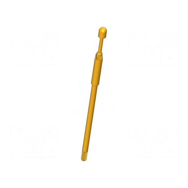 Igła testowa przeznaczona jest do precyzyjnych pomiarów w układach elektronicznych, oferując prąd znamionowy na poziomie 8A. Element charakteryzuje się okrągłym kształtem końcówki o średnicy 2,3 mm oraz maksymalną rezystancją styku wynoszącą 20mΩ. Konstrukcja zapewnia ugięcie robocze sprężyny 4 mm przy maksymalnym ugięciu wynoszącym 5,3 mm i sile nacisku 1,5 N.