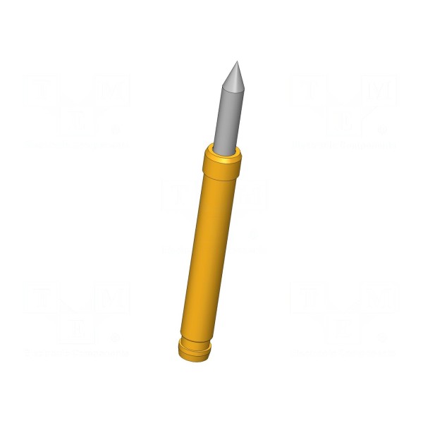 Igła testowa o długości 27,3mm przeznaczona jest do systemów pomiarowych, charakteryzując się prądem znamionowym na poziomie 5A. Element posiada ostrą końcówkę w kształcie stożka o średnicy 1,8mm oraz wykazuje rezystancję styku nieprzekraczającą 30mΩ. Konstrukcja wykonana ze stali z pokryciem rodowanym zapewnia przewodność oraz parametry eksploatacyjne w zakresie temperatur od -40°C do 80°C.