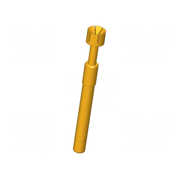 Igła testowa o średnicy końcówki 4 mm przeznaczona jest do precyzyjnych pomiarów. Element charakteryzuje się prądem znamionowym 8 A oraz rezystancją styku wynoszącą maksymalnie 30 mΩ. Kształt końcówki ostrza został zaprojektowany w formie odwróconego stożka, co zapewnia stabilność kontaktu podczas procesu testowego.