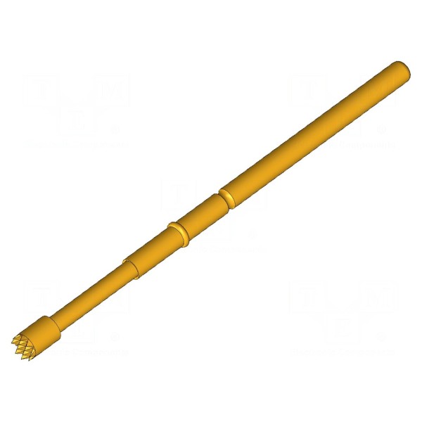 Igła testowa o średnicy końcówki 2 mm przeznaczona jest do precyzyjnych połączeń stykowych. Element charakteryzuje się kształtem końcówki ząbkowanej oraz wykonaniem z miedzi berylowej (CuBe) z pozłacaną powierzchnią, co pozwala na osiągnięcie maksymalnej rezystancji styku na poziomie 20 mΩ. Całkowita długość igły wynosi 38,4 mm.