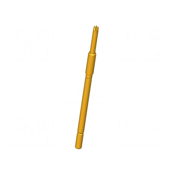 Igła testowa INGUN GKS-912 224 130 A 3006 przeznaczona jest do precyzyjnych pomiarów elektrycznych, oferując prąd znamionowy na poziomie 5A. Element wyposażony został w końcówkę o kształcie 6-punktowej korony o średnicy 1,3mm, co zapewnia stabilny kontakt podczas pracy. Konstrukcja wykonana ze stali z pozłacaną powierzchnią styku charakteryzuje się właściwościami samoczyszczącymi oraz wysokim punktem środkowym.
