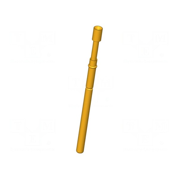 Igła testowa INGUN GKS-912 303 200 A 0802 to komponent pomiarowy o średnicy końcówki wynoszącej 2 mm, zakończony odwróconym stożkiem. Element charakteryzuje się prądem znamionowym 5 A oraz siłą ugięcia sprężyny na poziomie 0,8 N.