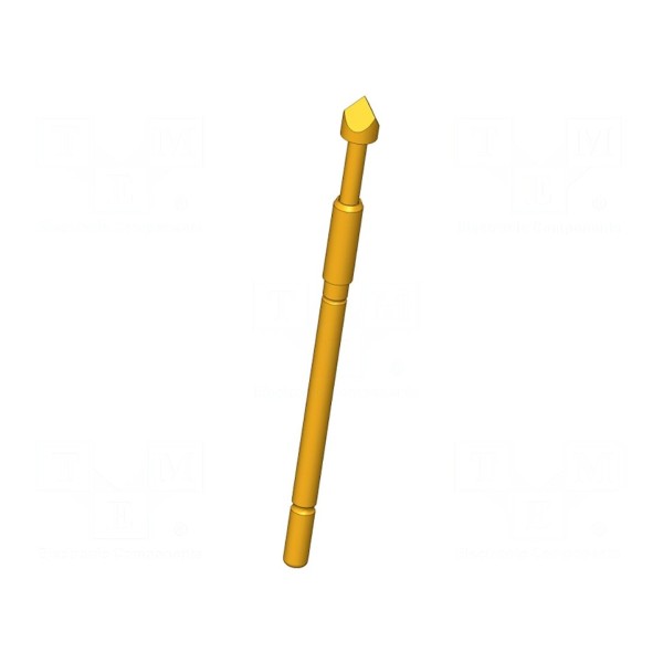 Igła testowa przeznaczona do układów pomiarowych, charakteryzująca się prądem znamionowym 5A. Element posiada końcówkę w kształcie dłuta o średnicy 2,5mm oraz właściwości samoczyszczące, co wpływa na stabilność połączenia. Styki wykonano ze stali z powłoką złoconą.