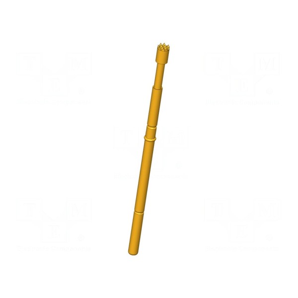 Igła testowa GKS-912 306 200 A 0610 charakteryzuje się prądem znamionowym 5A oraz ząbkowanym kształtem końcówki o średnicy 2mm. Element wykonany został z miedzi berylowej (CuBe) z powierzchnią wykończoną warstwą złocenia, co zapewnia parametry styku w różnorodnych warunkach eksploatacji.