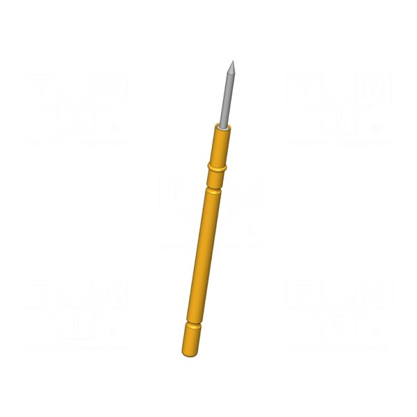 Igła testowa przeznaczona do zadań pomiarowych charakteryzuje się prądem znamionowym 5A oraz budową umożliwiającą samoczyszczenie styku. Element o długości 35,4 mm posiada końcówkę o kształcie igły o średnicy 0,8 mm, wykonaną ze stali i pokrytą warstwą rodu. Konstrukcja umożliwia montaż wtykowy, co ułatwia integrację z systemami testującymi.
