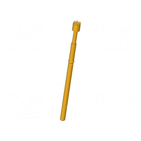 Igła testowa INGUN GKS-912 306 250 A 3007 to element pomiarowy przeznaczony do pracy przy prądzie znamionowym 8A. Produkt wyposażony jest w końcówkę o średnicy 2,5 mm o ząbkowanym kształcie, wykonaną z miedzi berylowej (CuBe) z warstwą złocenia zapewniającą parametry stykowe.