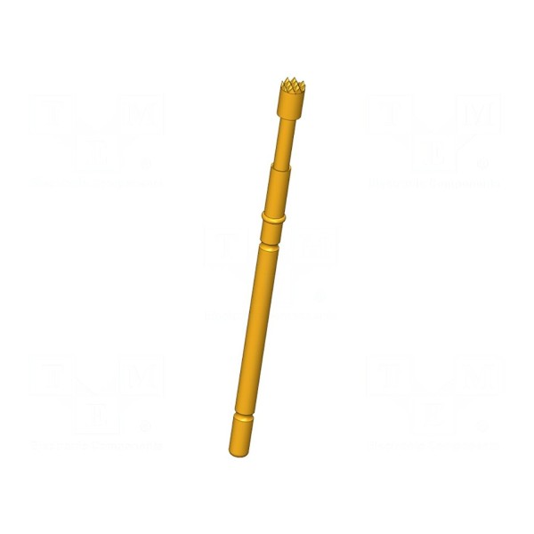 Igła testowa przeznaczona do precyzyjnych pomiarów elektrycznych, charakteryzująca się prądem znamionowym 8A. Element posiada końcówkę o średnicy 2mm o ząbkowanym kształcie, co zapewnia stabilny styk podczas pracy. Konstrukcja wykonana jest z miedzi berylowej (CuBe) z warstwą złocenia, co wpływa na parametry przewodzenia.