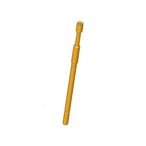 Igła testowa INGUN GKS-912 306 200 A 0606 to element przeznaczony do zastosowań pomiarowych, charakteryzujący się prądem znamionowym 5A. Końcówka o średnicy 2mm posiada ząbkowany kształt, co pozwala na stabilny kontakt z punktem testowym. Konstrukcja oparta jest na stopie miedzi z berylem (CuBe) z zewnętrzną powłoką złoconą.