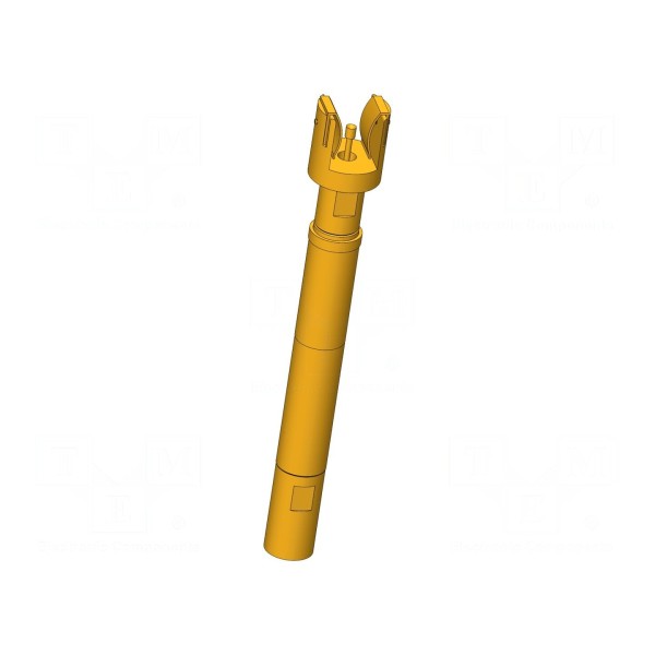 Konstrukcja igły oparta jest na stopie miedzi z berylem (CuBe) z pozłacaną powłoką styku, co zapewnia stabilność połączeń w zakresie temperatur pracy od -40°C do 80°C. Montaż elementu odbywa się metodą wciskową, a średnica kołnierza wynosi 6,5mm przy całkowitej długości 45mm.