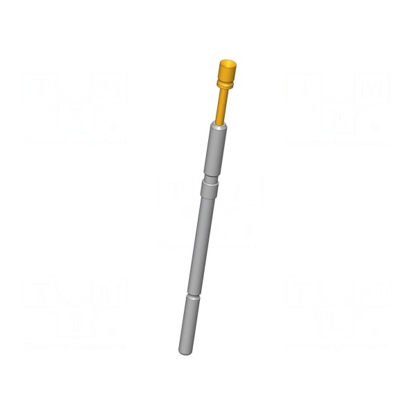 Igła testowa o długości 40,3 mm przeznaczona jest do zadań pomiarowych wymagających przepływu prądu znamionowego do 20 A. Element posiada końcówkę o średnicy 2 mm w kształcie odwróconego stożka, co ułatwia kontakt z punktami testowymi. Styki wykonane zostały z miedzi berylowej (CuBe) i poddane procesowi złocenia, co zapewnia maksymalną rezystancję styku na poziomie 10 mΩ.
