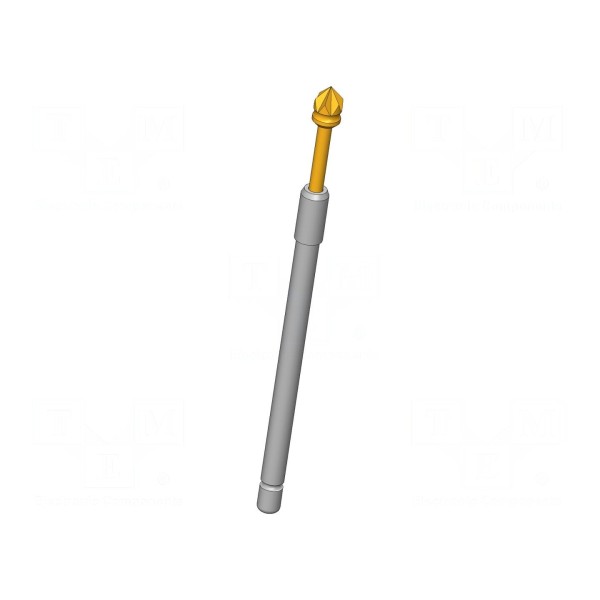 Igła testowa przeznaczona jest do pracy pod prądem znamionowym do 20A. Element charakteryzuje się końcówką o średnicy 2mm w kształcie ostrej piramidy sześciokątnej, co pozwala na precyzyjny kontakt w układach pomiarowych. Konstrukcja wykonana została z miedzi berylowej (CuBe) z powierzchnią pozłacaną, co zapewnia maksymalną rezystancję styku na poziomie 10mΩ.