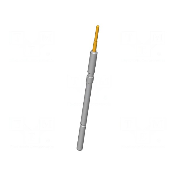 Igła testowa wykonana z brązu berylowego (CuBe) z powierzchnią styku pokrytą złotem. Element charakteryzuje się prądem znamionowym wynoszącym 20 A oraz maksymalną rezystancją styku na poziomie 10 mΩ. Konstrukcja posiada okrągły kształt końcówki o średnicy 0,8 mm.