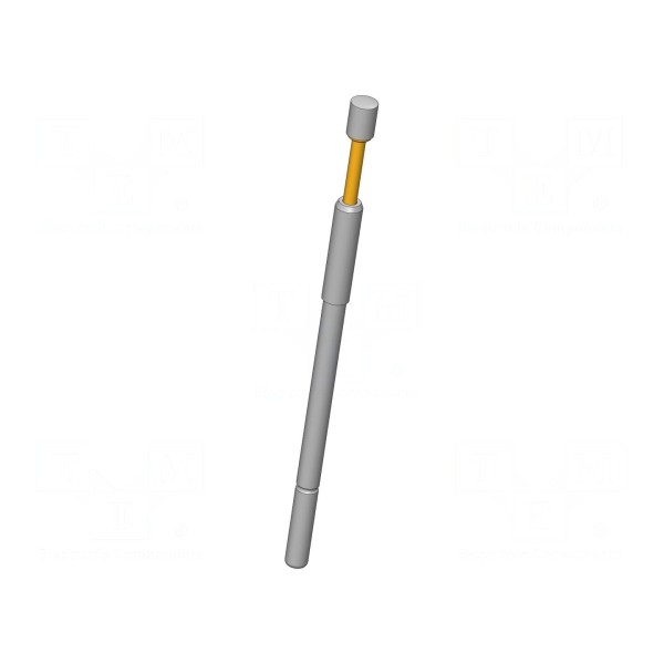Igła testowa o długości 38,3 mm przeznaczona jest do precyzyjnych pomiarów elektrycznych. Element charakteryzuje się prądem znamionowym wynoszącym 5 A oraz maksymalną rezystancją styku na poziomie 10 mΩ. Konstrukcja wykonana z miedzi berylowej (CuBe) z posrebrzaną powierzchnią styku zapewnia odpowiednią przewodność w aplikacjach testowych.