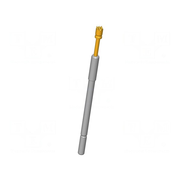 Igła testowa o średnicy końcówki 1,8 mm charakteryzuje się ząbkowanym kształtem ostrza. Element wykonany jest z miedzi berylowej (CuBe) z pozłacaną powierzchnią styku, co zapewnia rezystancję styku na poziomie maksymalnie 10 mΩ. Komponent dostosowany jest do pracy z prądem znamionowym wynoszącym 20 A.