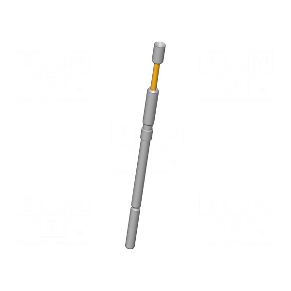Igła testowa przeznaczona do pomiarów elektrycznych, charakteryzująca się prądem znamionowym 20A oraz maksymalną rezystancją styku na poziomie 10mΩ. Element wyposażony jest w końcówkę o średnicy 2mm o kształcie odwróconego stożka, co pozwala na stabilne połączenie w punktach testowych. Konstrukcja wykonana została z miedzi berylowej (CuBe) z warstwą srebra, co zapewnia przewodność w szerokim zakresie temperatur pracy od -100°C do 200°C.