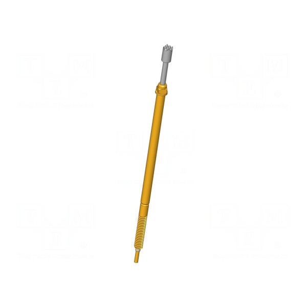 Igła testowa o długości 46,5 mm przeznaczona jest do precyzyjnych pomiarów elektrycznych. Element charakteryzuje się prądem znamionowym wynoszącym 3 A oraz maksymalnym ugięciem sprężyny na poziomie 5 mm, przy sile ugięcia 0,9 N. Wykonany z miedzi berylowej (CuBe) styk został poddany niklowaniu, co wpływa na jego właściwości użytkowe.